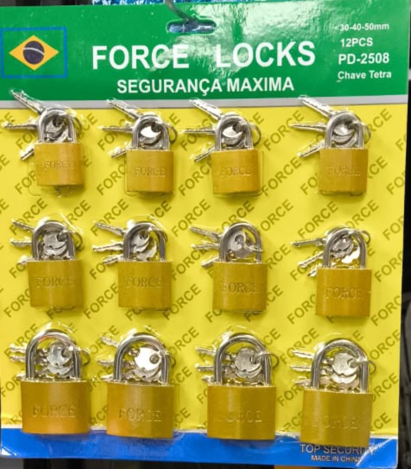 Cartela com cadeado com 12 peças chave tetra30/40/50MM